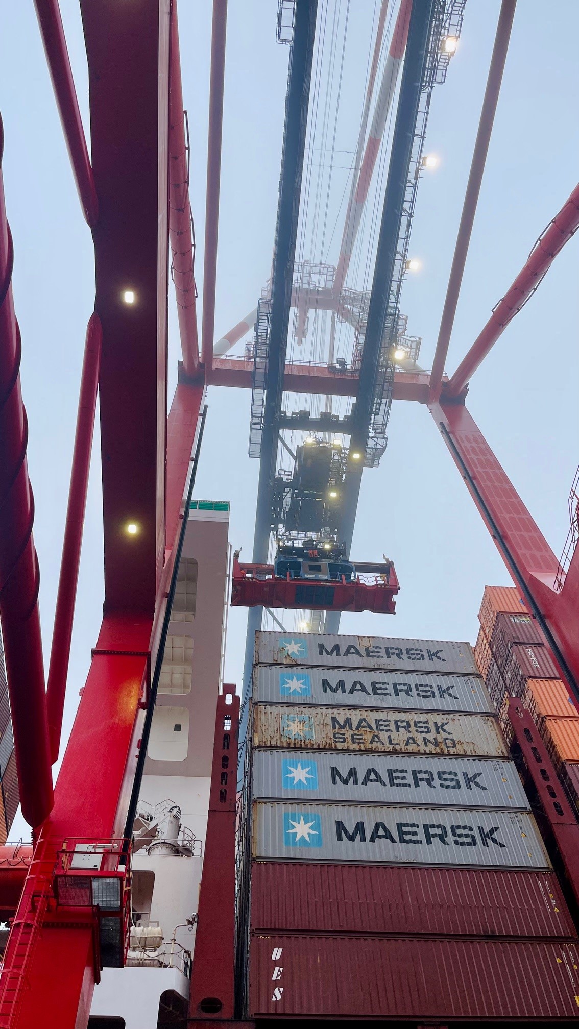 Zu einem ungewöhnlichen Rettungseinsatz wurde die Feuerwehr Wilhelmshaven am Freitagmittag. 7. November 2025, an den JadeWeserPort gerufen. Auf einem 400 Meter langen Containerfrachter musste eine Person reanimiert werden. Die zur Hilfe gerufene Feuerwehr und der Rettungsdienst versorgten den Patienten auf der Brücke des Frachters. Die Brücke des Schiffes befand sich in rund 50 Meter Höhe oberhalb des Piers am Containerterminal. Bei dieser Höhe konnte die Personenrettung nicht mit der Drehleiter ausgeführt werden. Auch ein Hubschrauber konnte aufgrund des vorherrschenden Nebels nicht eingesetzt werden. Also entschied man sich für den Einsatz einer Containerbrücke mit Rettungskorb. Diese Rettungsvariante gelang nur knapp, da das Hochwasser zu diesem Zeitpunkt besonders hoch ausgefallen war.