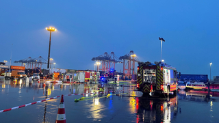 Zu einem Gefahrguteinsatz auf dem Gelände des Containerterminals wurde die Feuerwehr Wilhelmshaven am Donnerstagnachmittag, 12. Februar 2026, alarmiert. Aus dem Ventil eines Tank-Containers war aus bislang ungeklärter Ursache eine giftige Flüssigkeit getropft. Über 40 Kräfte der Berufs- und Freiwilligen Feuerwehr konnten durch aufwendige Maßnahmen und unmittelbar umgesetzte taktische Entscheidungen ein weiteres Auslaufen verhindern. Insgesamt waren sie rund vier Stunden im Einsatz. Drei Verletzte, die zuvor mit dem Stoff in Berührung gekommen waren, wurden vom Rettungsdienst in die Schockräume umliegender Kliniken zur weiteren Behandlung gebracht.