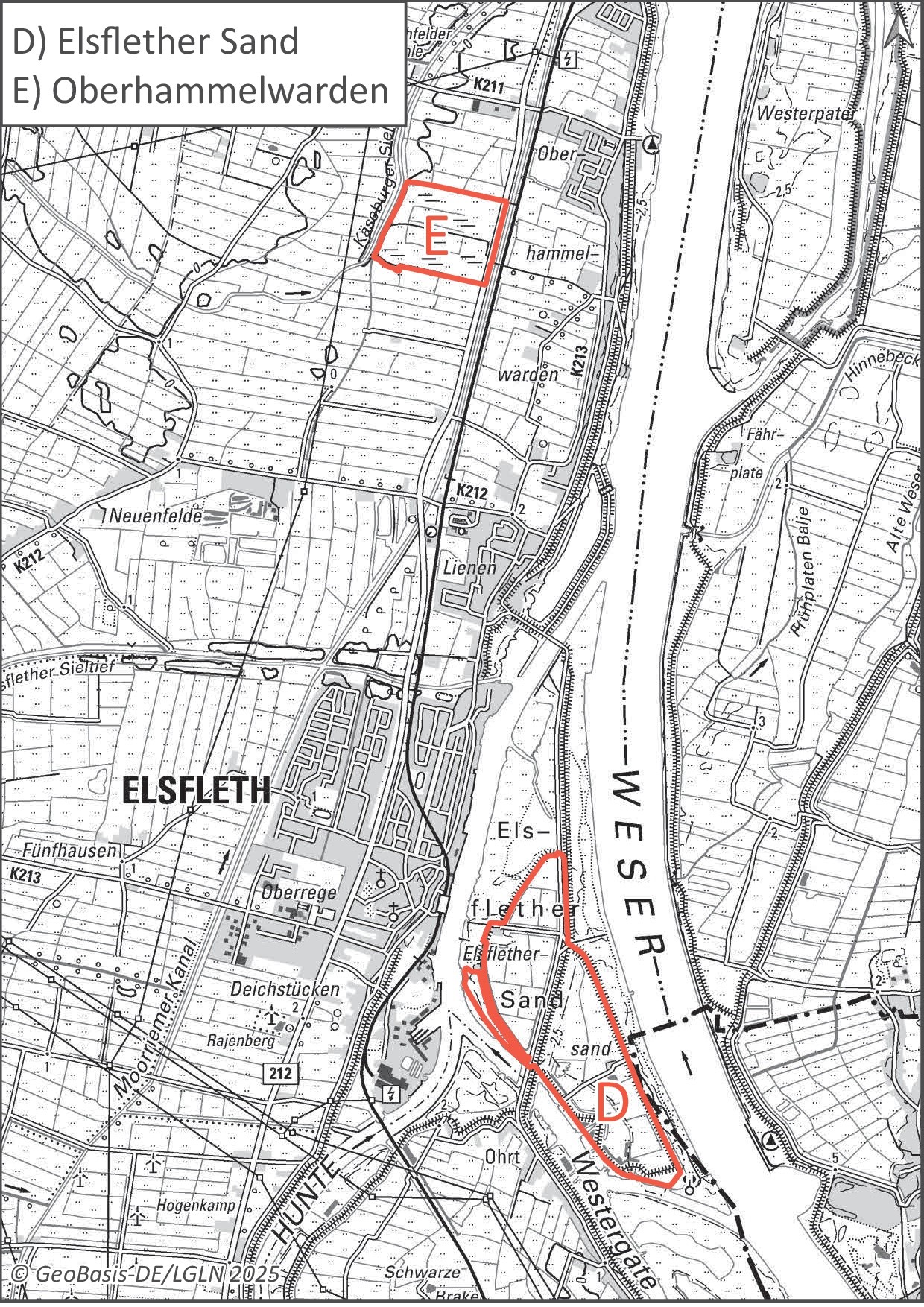 Das Gebiet liegt in der Stadt Elsfleth und befindet sich westlich des Ortsteils Oberhammelwarden und nördlich dem Areal Elsflether Sand.