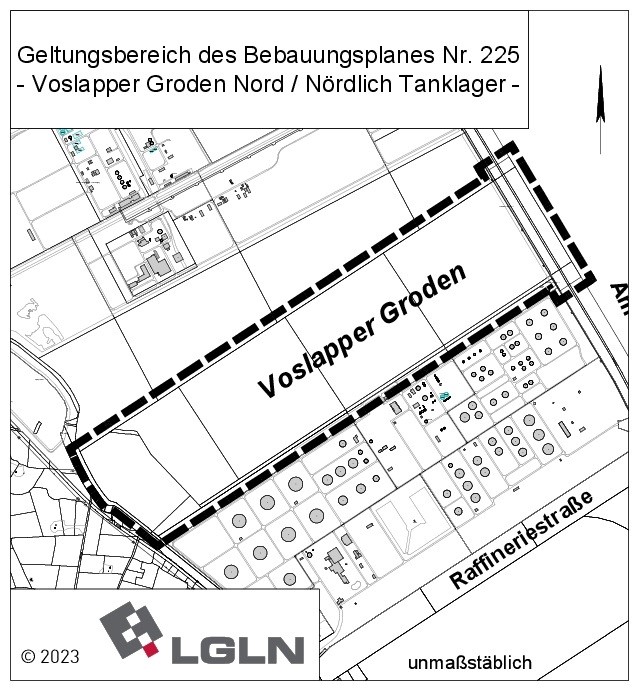 Der Rat der Stadt Wilhelmshaven hat in seiner Sitzung am 27.08.2025 den neuen Entwurf der 87. Änderung des rechtswirksamen Flächennutzungsplans in der Fassung der Neubekanntmachung vom 19.11.2022 –Voslapper Groden-Nord / Nördlich Tanklager- und den neuen Entwurf des Bebauungsplanes Nr. 225 -Voslapper Groden-Nord / Nördlich Tanklager– beschlossen.
